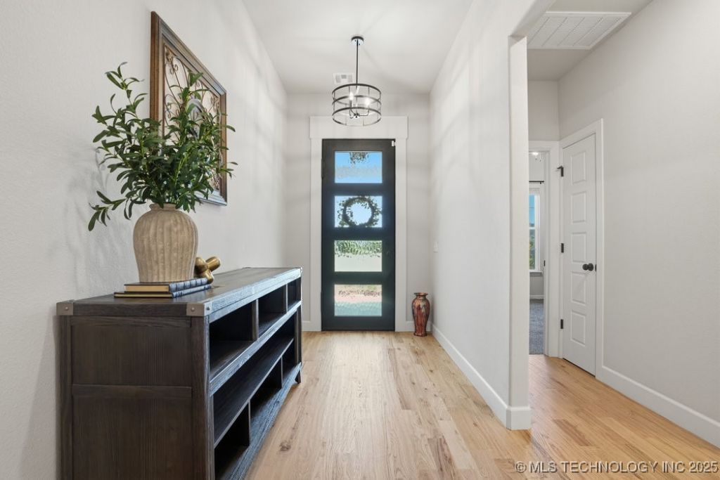 This Stunning Home is Perfectly On-Trend with Sleek, Modern finishes with just the right touch of Character and Timeless Appeal. MOVE IN Ready Home. Built in 2022. Tucked in Charleston Place. This Hidden Cul-de-sac Neighborhood is Fresh, Private, and Centrally located to all Owasso has to offer. Plentiful STORAGE! 3-Car Garage. Walkthrough Pantry, Utility Drop Zone, All-Seasons Primary Closet connected to Laundry. Highly desirable Open Concept Living, Kitchen, and Dining Ideal for seamless day-to-day living and effortless entertaining. The 3rd Front Bedroom is currently used as an office space or Opt to Utilize the Multi-Functional Built-in Area in the Dining Area! Living Room has a Fireplace, Tall Ceilings & Large Windows that let in plenty of light. Want a cozier feel? Close the Window Blinds ft. throughout and enjoy Exterior Solar Screens for extra privacy! Another remarkable feature is the recently installed Reme Halo LED Whole Home Air Purifier! This Thoughtfully Designed Home boasts Sleek Cabinetry, Extensive Trim, & no shortage of light. GORGEOUS KITCHEN has plenty of Cabinetry, Stylish Shelving plus Tons of Counter Top Space, and a Large Island PERFECT for entertaining! Primary Bath features Soaking tub, Tile to Ceiling Walk-in Shower, Separate Vanities. Exterior Features-Privacy Solar Screens on all windows, spacious backyard + Screened-in Back Porch with NEW Epoxy Patio. All appliances and security system stay. Enjoy morning coffee and relaxing evening on the back patio with peace of mind-Wired Security System+Cameras Convey. This property offers a peaceful retreat, nestled in the back of the neighborhood, ensuring you are away from the busy street traffic. Experience the perfect blend of style, space, and tranquility! Don't miss this one! Schedule Your Showing Today!