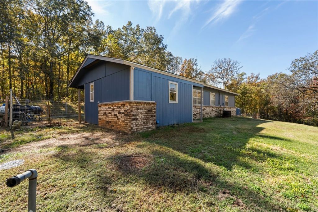 Set on a peaceful one-acre lot surrounded by open skies and quiet countryside, this well-maintained ranch-style home blends small-town charm with everyday comfort. Built in 1971 and updated, it offers 3 bedrooms, 1 bath, and just over 1,000 square feet.Inside, a bright, open layout features new laminate flooring and a neutral palette that complements the brick exterior. The living room flows into a cheerful kitchen with modern cabinetry, updated fixtures, and great natural light.All three bedrooms offer flexibility, and the updated bathroom provides a clean feel. Central heat and air ensure year-round comfort, with public water, propane hot water, and septic.Outside, the acre offers room for gardening, gatherings, or hobby use. Level terrain, a gravel drive, and a shaded yard create a relaxed setting?just a short drive to Muldrow and Fort Smith.NOTE: GPS location may be incorrect. Please verify with final photo.