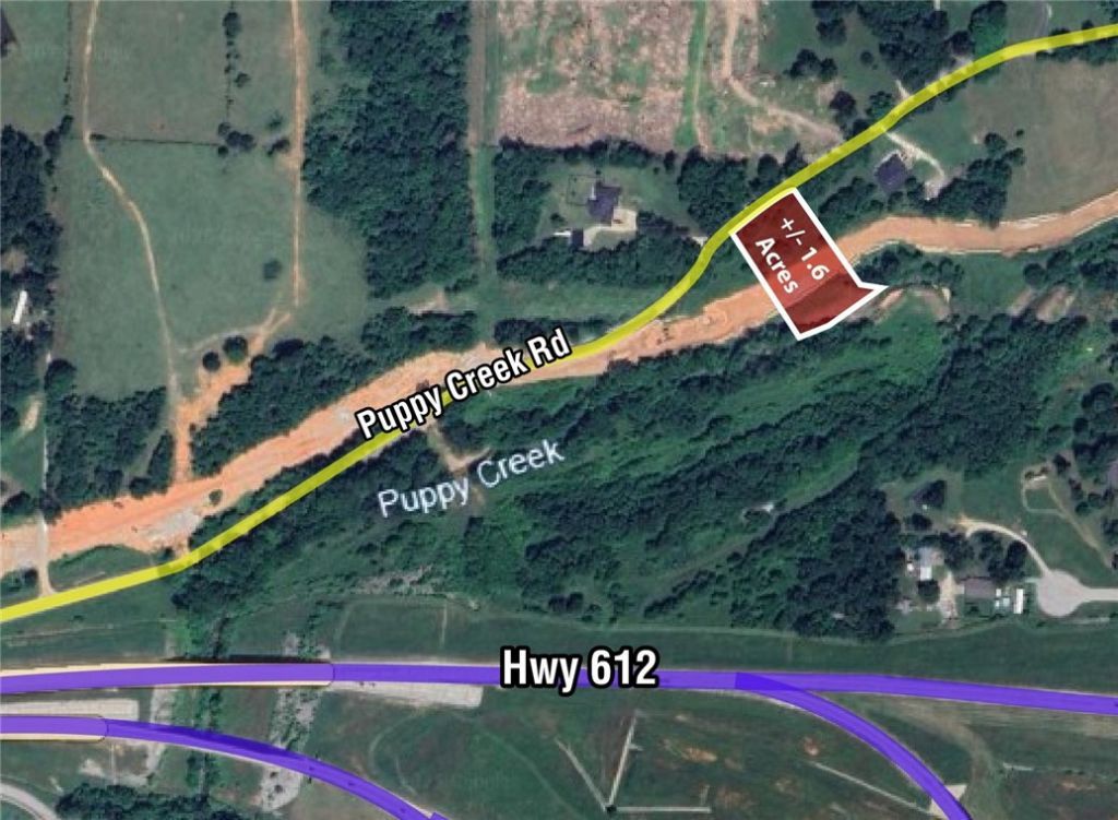 Build Your Dream home on +/- 1.6 acres offering excellent potential for residential development! This property is in the heart of beautiful Northwest Arkansas, close to all amenities: less than 5 minutes to JB Hunt Corporate HQ, less than 10 minutes to Pinnacle Hills Promenade Mall, restaurants, shopping, I-49, 11 minutes to XNA airport, and less than 5 minutes to the new 612. This property has a wooded feel and backs up to a beautiful creek. A +/- 5,000 sf home could be built here, depending on buyers perc test results. The back of the lot is in the flood zone, ideal building spot is to the north side. Lot is still subject to splitting approval with City of Lowell, but verbal conversations have been had and city seems receptive to the split. Septic may be ideal, but sewer line is in Puppy Creek - access to be approved by Lowell/Springdale. It is a Springdale Sewer Line but Lowell Administers it. Buyer would also need a well, but water is on the property to the south so could possibly be negotiated to come north.