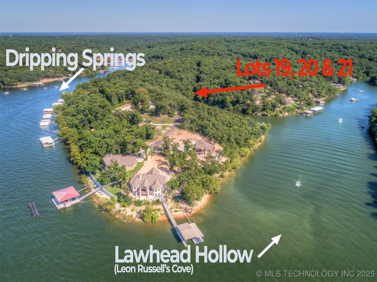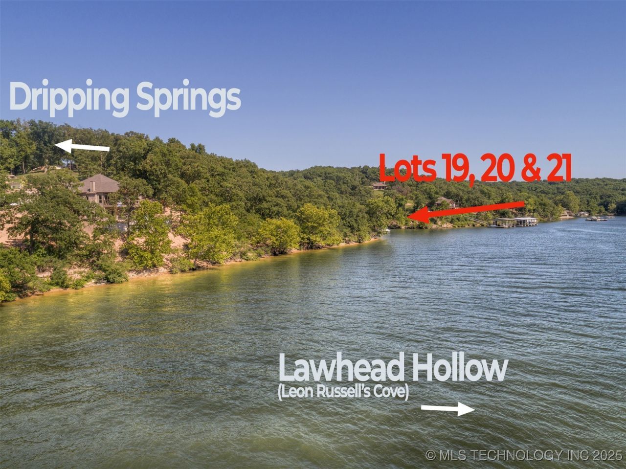 Spacious 2.48-Acre Waterfront Opportunity on South Grand Lake This rare offering includes three adjoining lots sold together, totaling approximately 2.48 acres in a premium South Grand Lake community. With direct water frontage, the property offers a scenic setting for your lake getaway or dream home. Swim dock potential - subject to GRDA approval. Easy to find, yet tucked into a private cove in Lawhead Hollow - famously known as Leon Russell's Cove - this spacious property delivers breathtaking views, a quiet, protected setting away from rough water, and convenient proximity to the lake's seasonal festivals and local landmarks. Located between Dripping Springs Cove and Lawhead Hollow, this is a rare opportunity in a sought-after, storied part of Grand Lake.