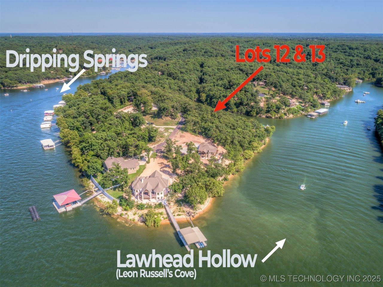 1.06 Acres of Lakefront Living - Lots 12 & 13 in Fox Pointe A perfect blend of manageable size and prime location, this 1.06-acre lakefront property combines two lots sold together with direct access to one of South Grand Lake's most iconic coves - nestled between Dripping Springs and Lawhead Hollow (Leon Russell Cove). Set in a small, deep cove, the location offers both convenience and natural protection from the main lake's rougher waters - ideal for keeping your dock and boat sheltered. With GRDA approval, you can build your own private dock and create the ultimate lakeside escape. The added width from combining lots gives you more elbow room, smoother construction access, and a gentler slope to the water - making this property as practical as it is picturesque.