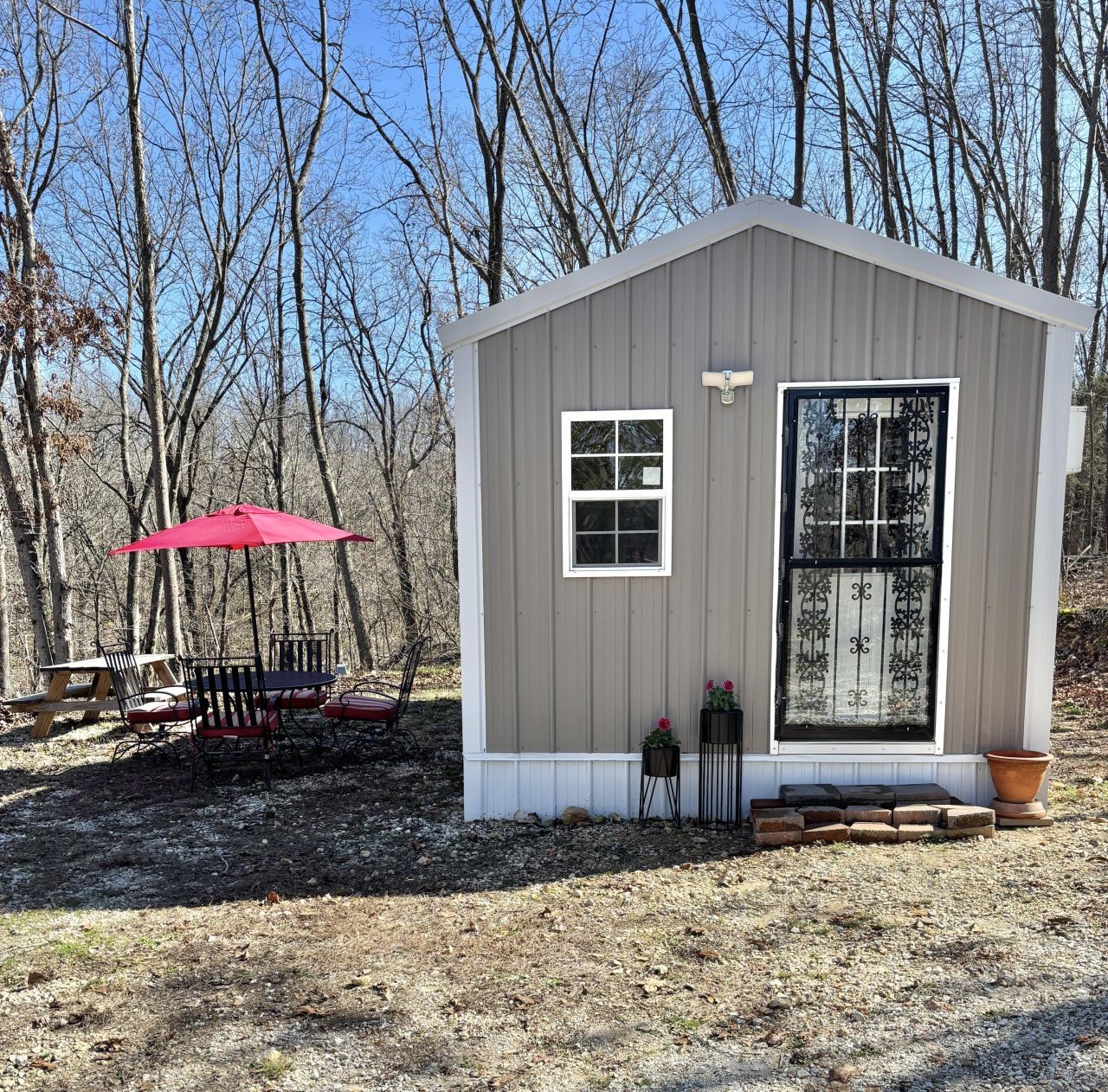 This expertly crafted Amish-built tiny home sits on almost 2 spacious acres, allowing you to live comfortably on the property while building your future home- Once complete, keep the tiny home as a guest suite or rental opportunity! OR create a private weekend retreat & enjoy your own hunting getaway! With plenty of space to expand and nature right outside your door, the opportunities are endless!Inside you'll find modern conveniences including washer and dryer, refrigerator, stove hookup, luxury vinyl plank floors, security cameras, and an upgraded rain shower head for everyday comfort.Four fruit trees add charm and seasonal harvests, while the acreage provides ample space. A rare chance to invest in land and lifestyle at the same time. Call your favorite Agent to see it in person!